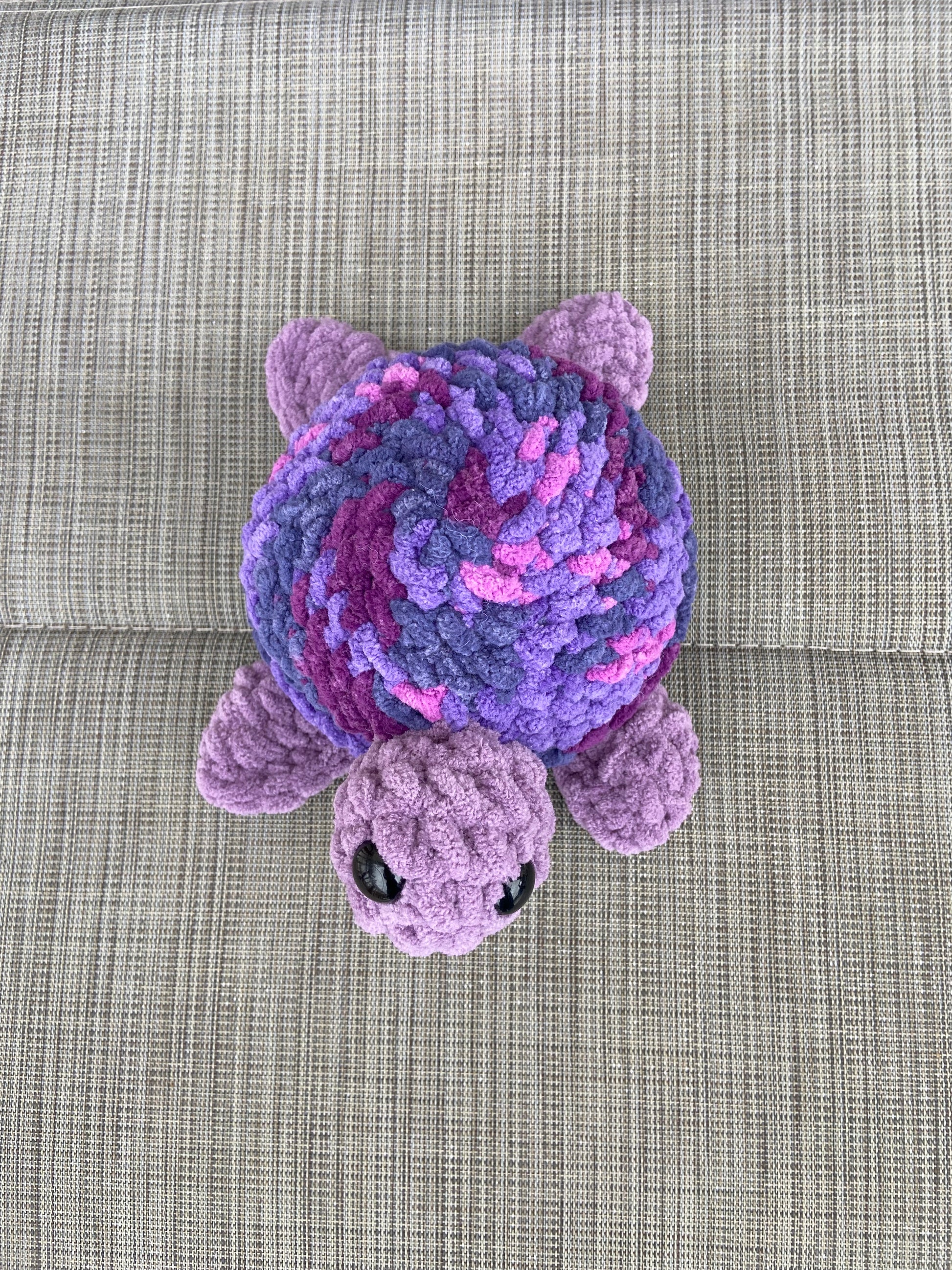 Meet our adorable crocheted turtle! Handmade with love and care, this charming little creature will capture your heart with its cute and whimsical design. Perfect for both kids and adults, this turtle makes a wonderful addition to any home. With its soft and cuddly texture, it's perfect for snuggling up with or displaying as a decorative item. Each turtle is made with high-quality yarn, ensuring that it is both durable and long-lasting. Whether you're looking for a unique gift or simply want to treat yourself to something special, our crocheted turtle is sure to bring a smile to your face. So why wait? Bring home this delightful little creature today and watch it become a cherished part of your collection!