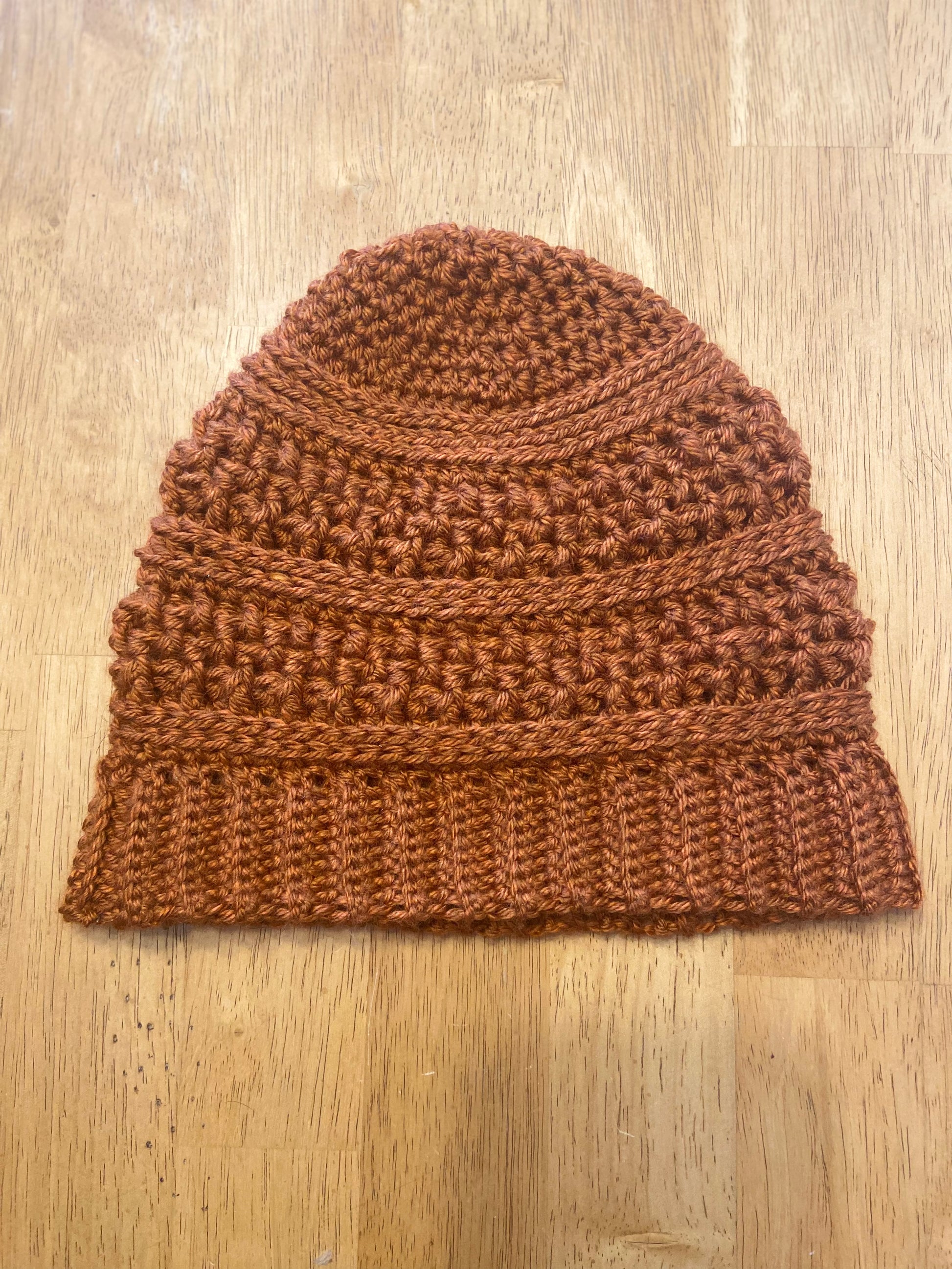 This cozy, hand-made hat is perfect for keeping you warm all winter long! Made with a soft, simple yarn, it's sure to keep you comfortable.